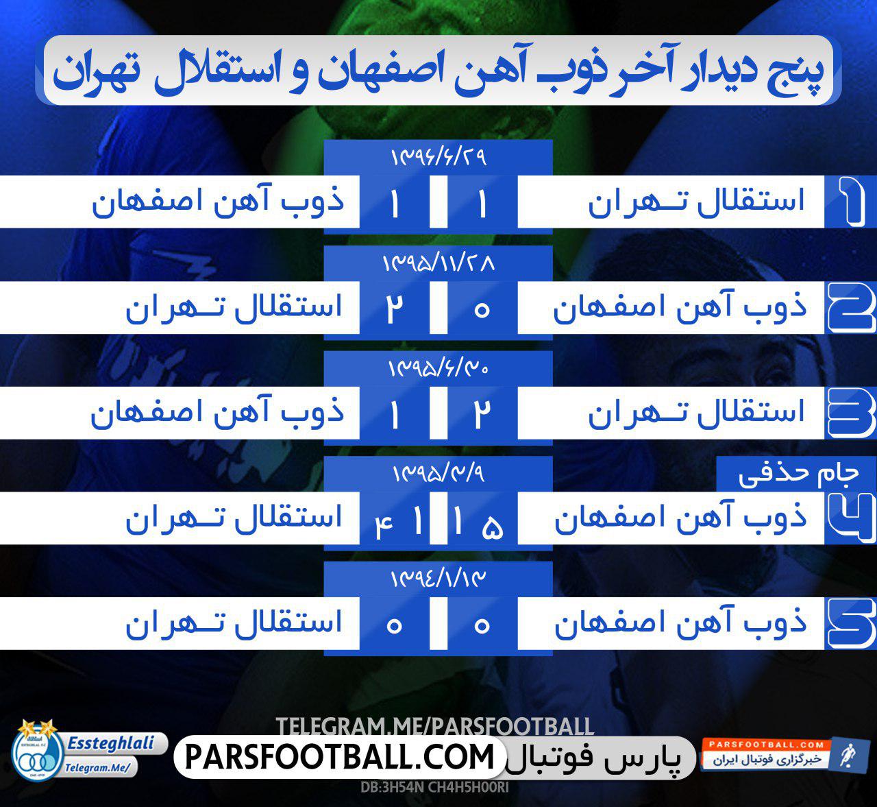در ادامه نیز، اینفوگرافی پنج دیدار اخیر تیم های استقلال تهران و ذوب آهن را برای شما آماده کرده ایم: