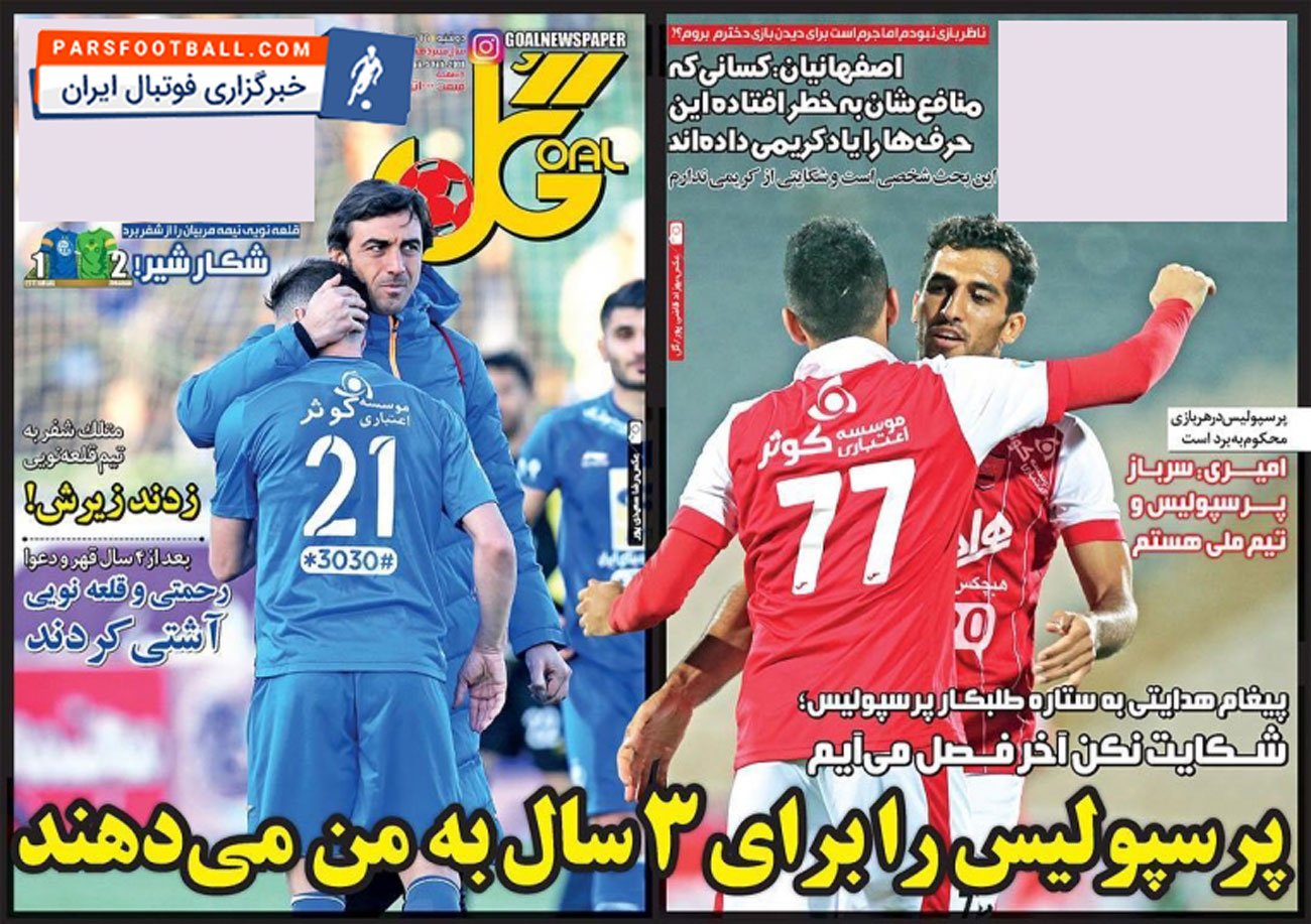 روزنامه گل ، دوشنبه ۱۶ بهمن ؛ پرسپولیس را برای ۳ سال به من می دهند !