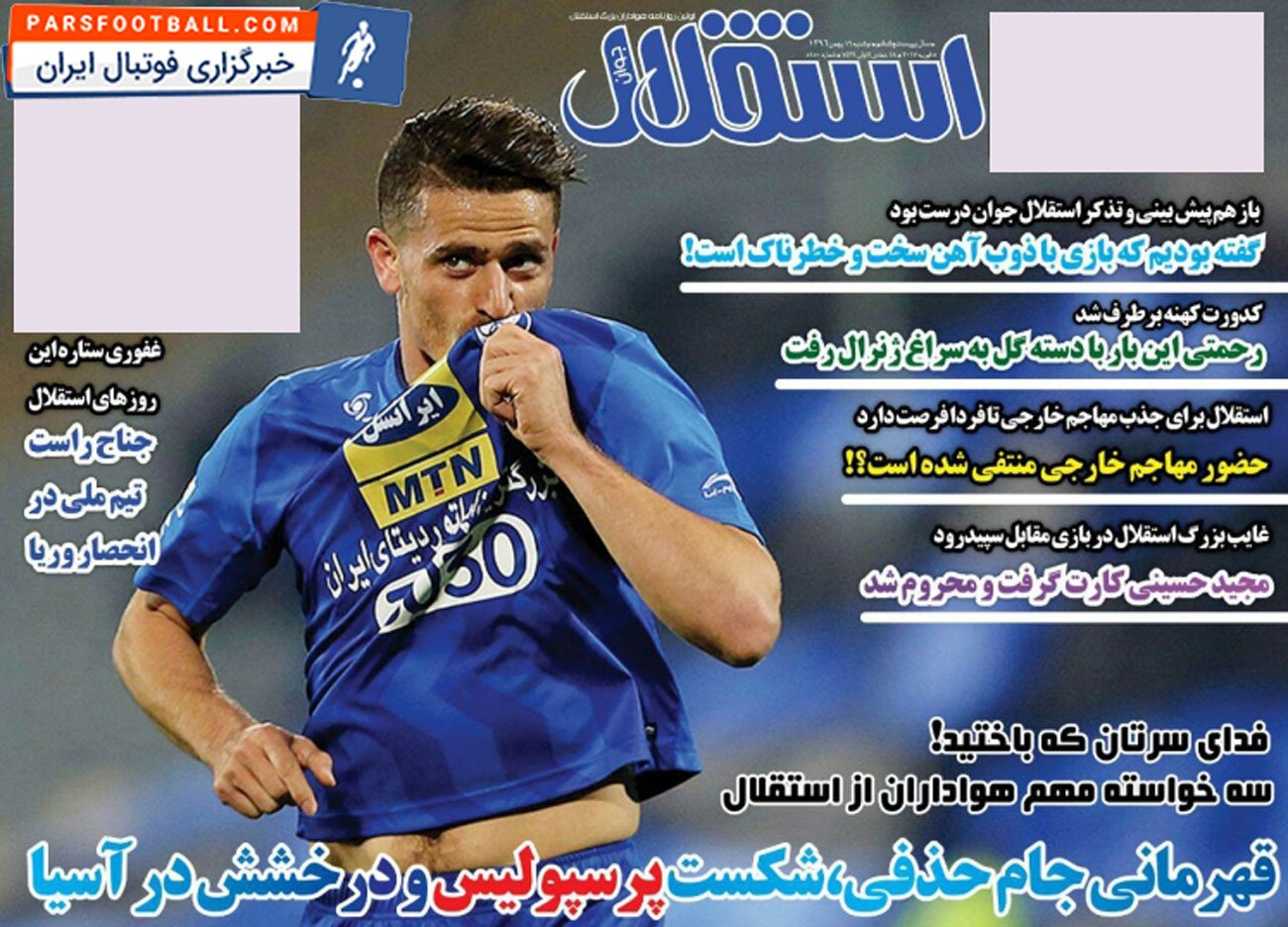 روزنامه استقلال جوان ، دوشنبه ۱۶ بهمن ؛ فدای سرتان که باختید !