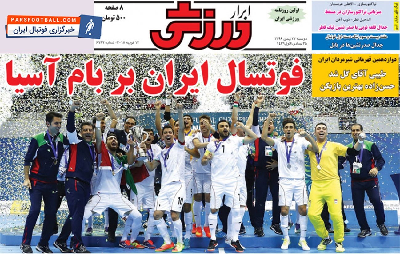 روزنامه ابرار ورزشی ، دوشنبه ۲۳ بهمن ؛ فوتسال ایران بر بام آسیا !