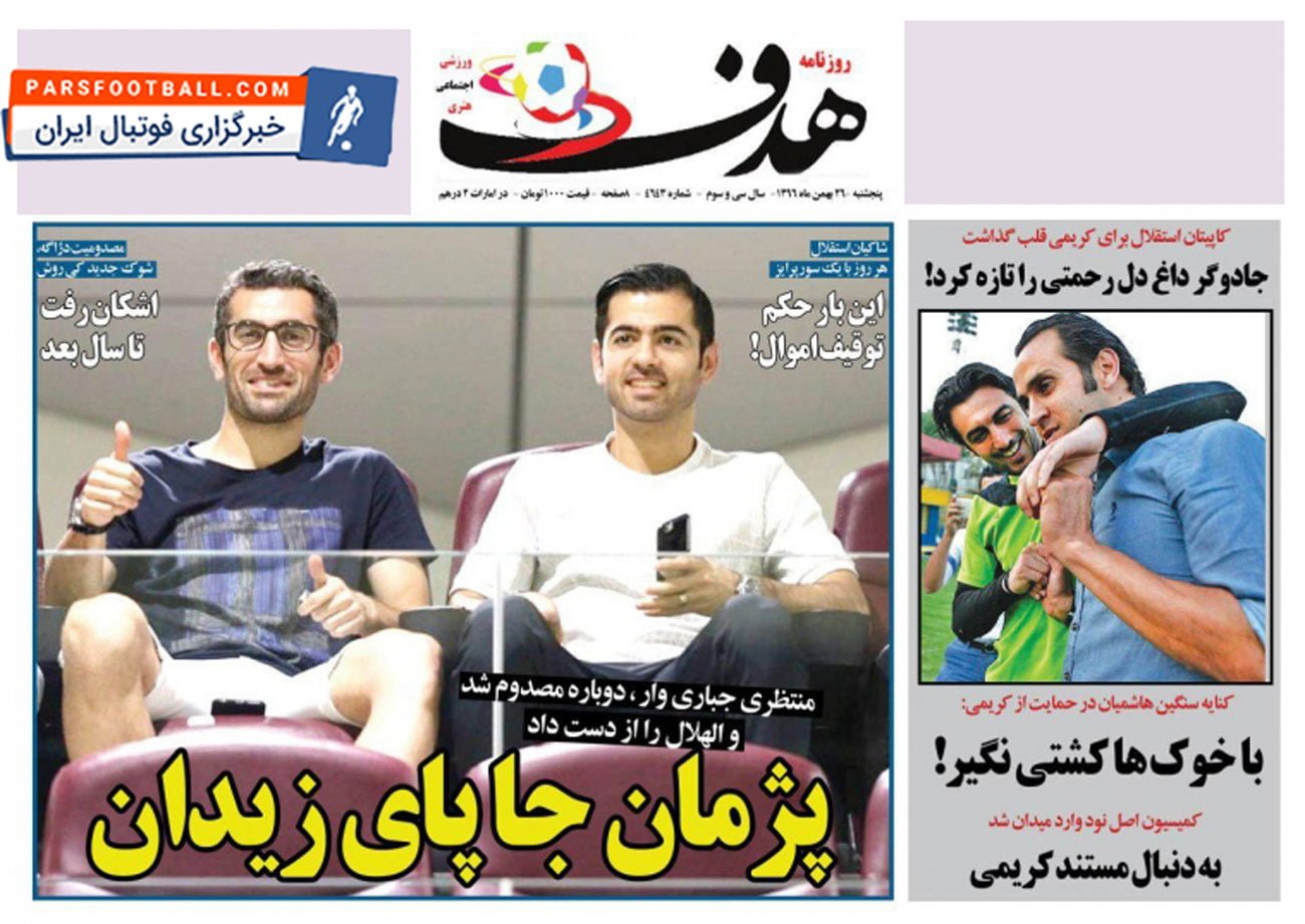روزنامه هدف ورزشی ، پنجشنبه ۲۶ بهمن ؛ جادوگر داغ دل رحمتی را تازه کرد !