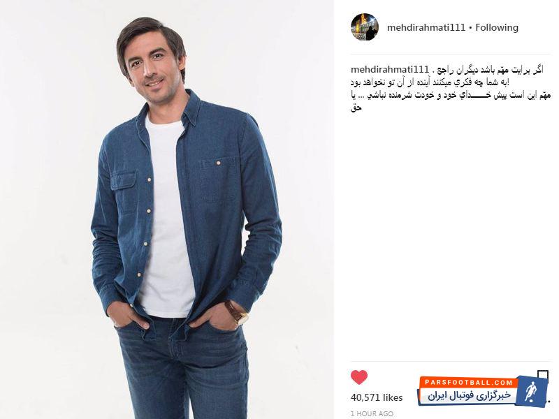 مطلب جالب سید مهدی رحمتی در اینستاگرام خطاب به مردم : نگران فکر دیگران نسبت به خودتان نباشید!