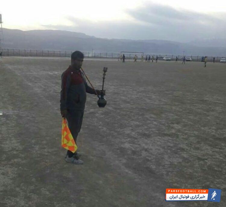 اتفاق عجیب در فوتبال ایران ؛ کشیدن قلیان توسط کمک داور در زمین فوتبال!