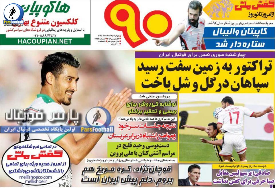 روزنامه نود ، چهارشنبه ۲۵ اسفند ؛ برانکو و گل محمدی از من بهترند