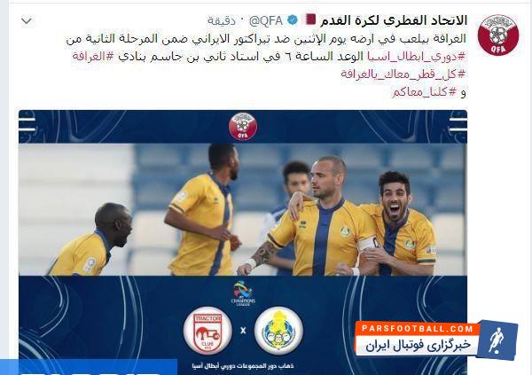 فدراسیون فوتبال قطر با انتشار پیامی از هواداران فوتبال این کشور درخواست کرد تا در دیدار الغرافه مقابل تراکتورسازی در لیگ قهرمانان آسیا از الغرافه حمایت کنند.