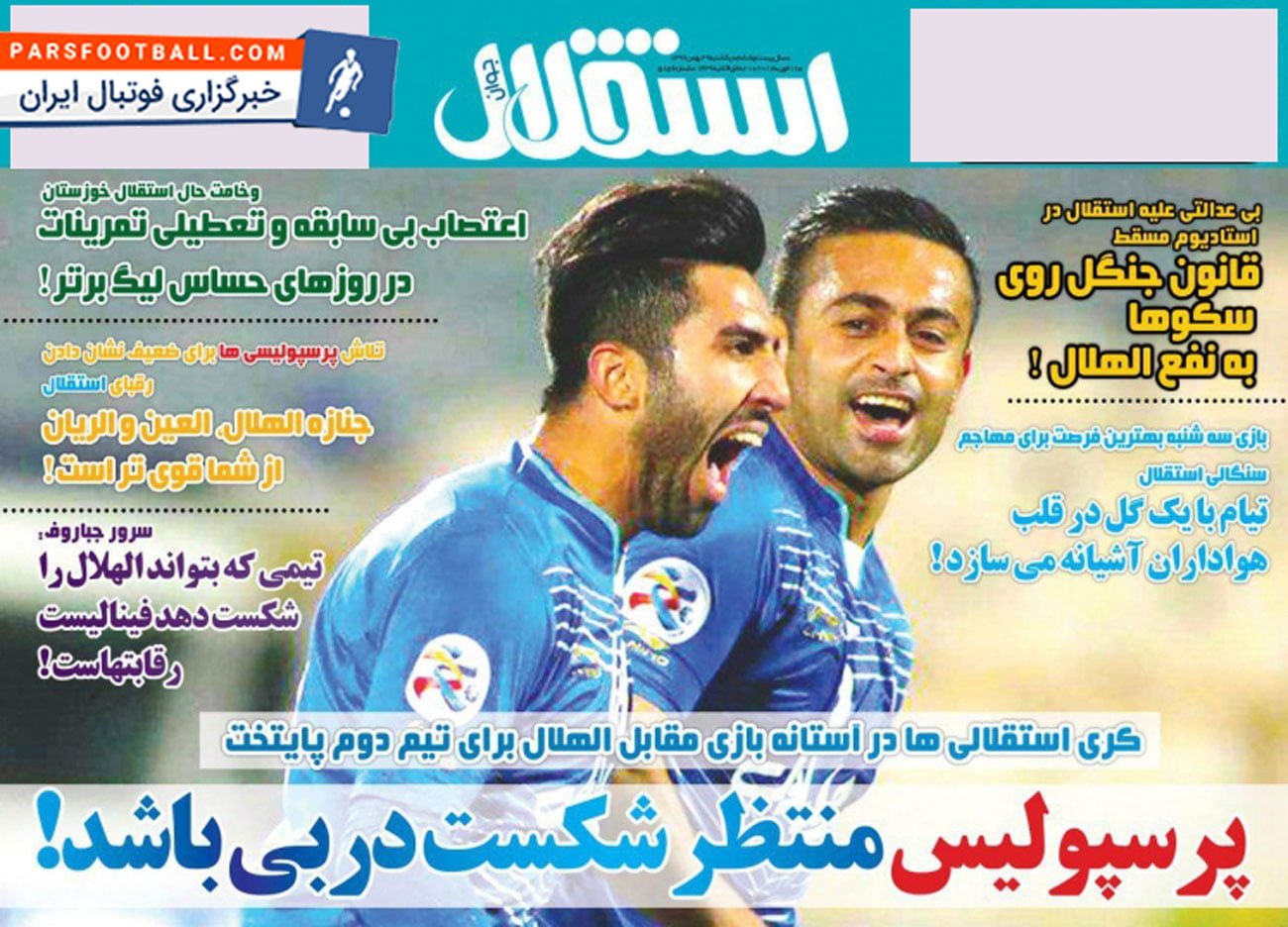 روزنامه استقلال جوان ، یکشنبه ۲۹ بهمن ؛ پرسپولیس منتظر شکست دربی باشد !