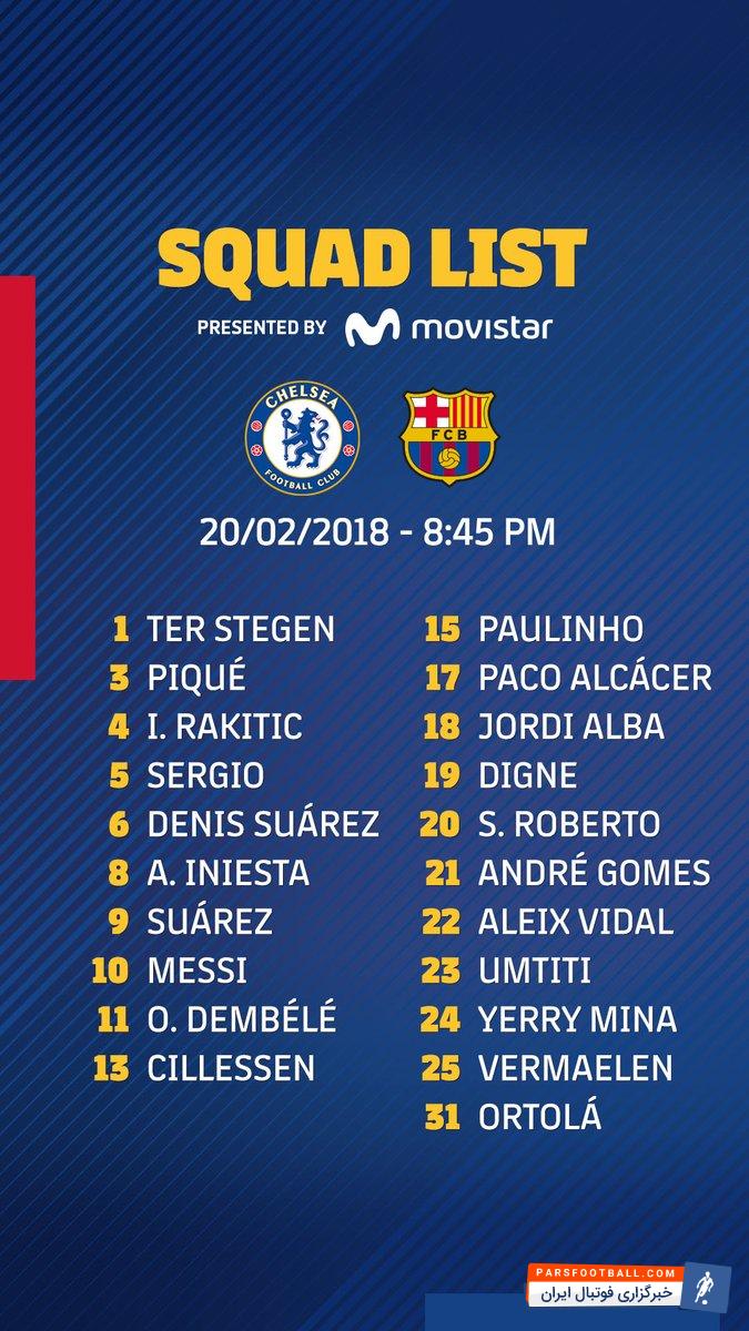 لیست بازیکنان بارسلونا برای دیدار برابر چلسی
