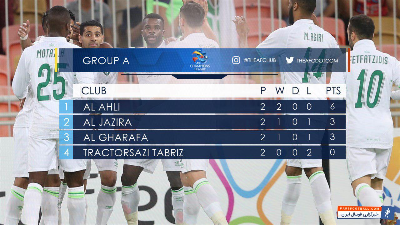 الاهلی با این پیروزی ۶ امتیازی شد و در صدر جدول گروه ایستاد. الجزیره هم ۳ امتیازی باقی ماند و با توجه به پیروزی در بازی رودررو مقابل الغرافه، بالاتر از این تیم در رده دوم جدول قرار گرفت. در این گروه تراکتورسازی بدون امتیاز چهارم است.