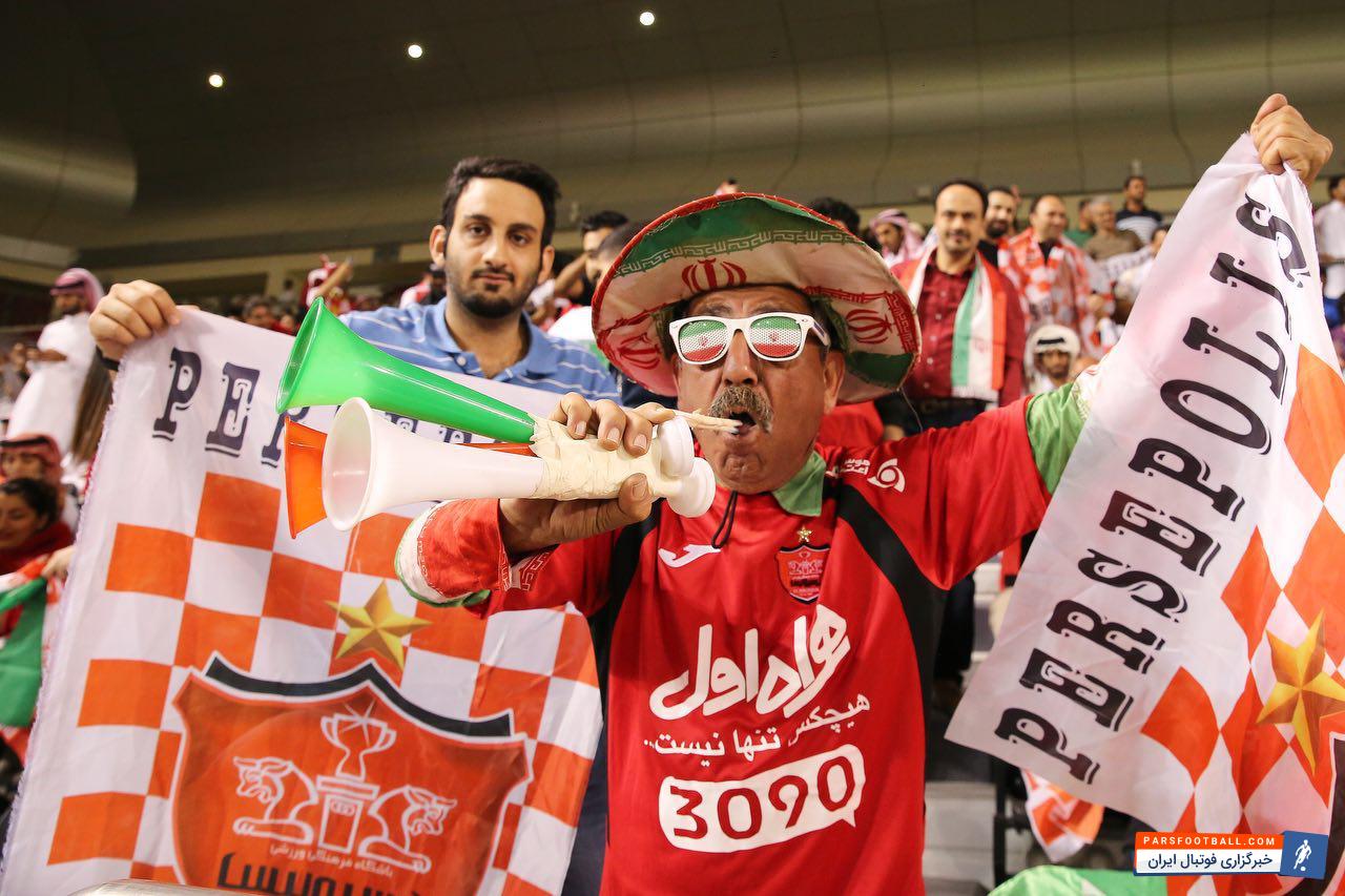 ایرانیان حاضر در قطر با حضور در استادیوم جاسم بن حمد ، به طرفداری از پرسپولیس پرداختند