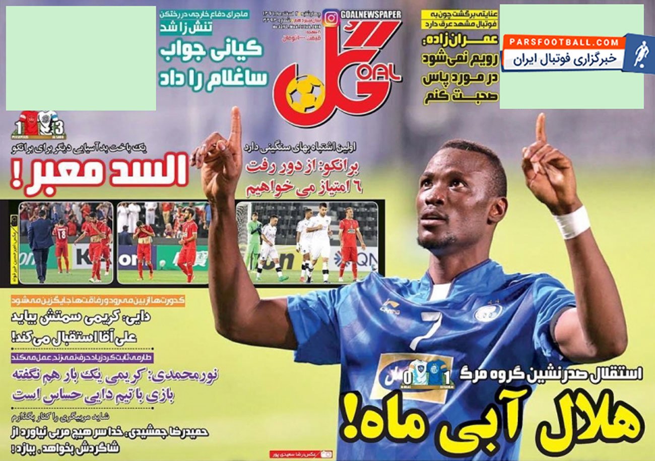 روزنامه گل ، چهارشنبه ۲ اسفند ؛ هلال آبی ماه !