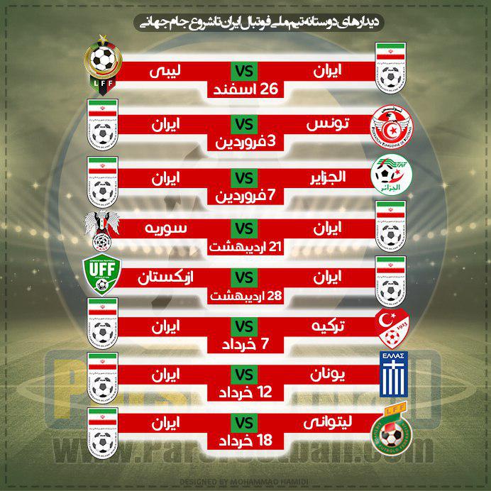 این اینفوگرافی بر اساس آنچه در رسانه های مختلف به عنوان بازی های دوستانه ی تیم ملی پیش بینی شده است، خدمت شما ارائه می شود.