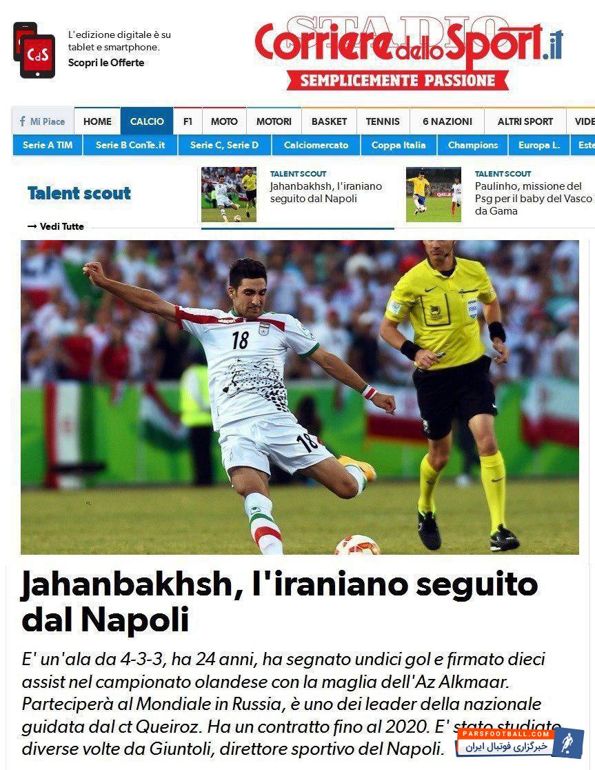 « او در کنار سردار آزمون دو ستاره تیم ملی فوتبال ایران محسوب میشوند که باید در جام جهانی روسیه برابر تیمهای بزرگی همچون پرتغال، مراکش و اسپانیا بازی کنند. جهانبخش ۲۴ ساله که یک متر و ۸۰ سانتی متر قد دارد توانایی بازی در سمت راست و چپ زمین را دارد و بعد از حضور در داماش گیلان در سال ۲۰۱۳ با قراردادی به ارزش ۲۵۰ هزار یورو راهی فوتبال هلند شد و از آن زمان تاکنون عملکرد بسیار خوبی در این تیم داشته است، به طوری که در حال حاضر قیمت این بازیکن به دست کم هشت میلیون یورو رسیده است و این به خوبی نشان میدهد که تا چه میزان او در فوتبال هلند پیشرفت داشته است و اگر سران ناپولی نجنبند باید در سالهای آتی با قیمت به مراتب بیشتری جهانبخش را به دست بیاورند».