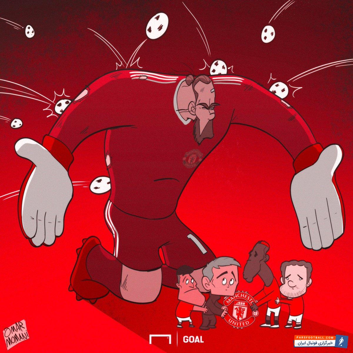 داوید دخیا ، دروازه بان اسپانیایی و ملیپوش منچستریونایتد همچنان به درخششهایش ادامه میدهد. این بار نوبت به مهاجمان سویا بود تا درک کنند که این روزها گل زدن به این دروازه بان چقدر دشوار است. آندلسیها هر چه زدند، به در بسته خورد تا با یک تساوی بدون گل راهی اولدترافورد شوند. سیوهای دیدنی دخیا به دستمایه عمر مومنی تبدیل شده تا اثر زیر را به تصویر بکشد: