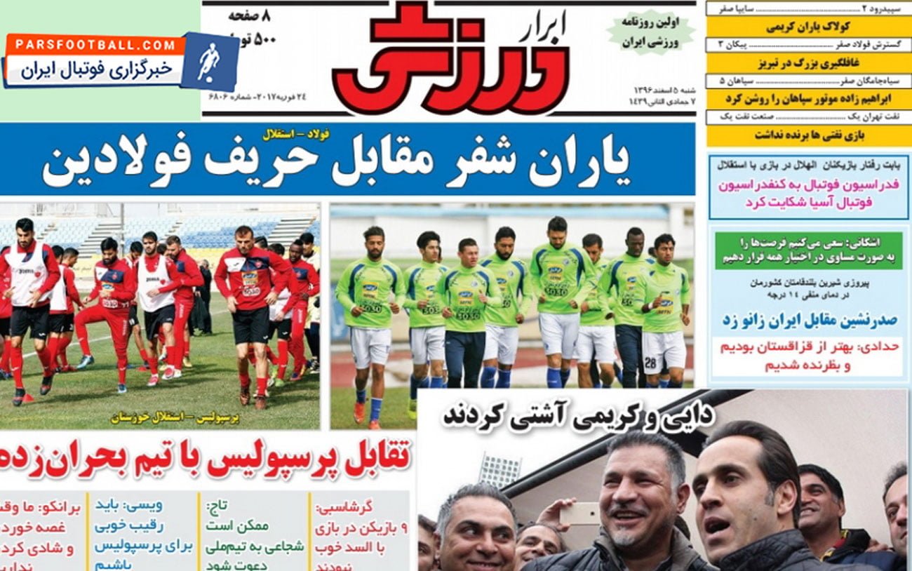 روزنامه ابرار ورزشی ، شنبه ۵ اسفند ؛ یاران شفر مقابل حریف فولادین !