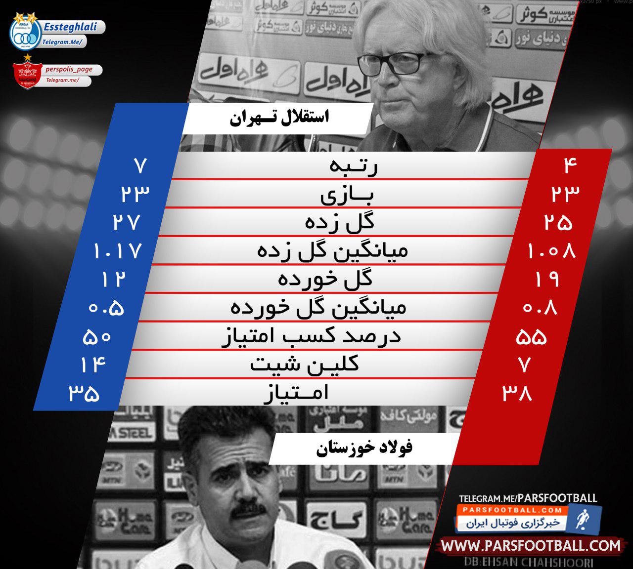 اینفوگرافی عملکرد و آمار و ارقام تیم های استقلال تهران و فولاد خوزستان