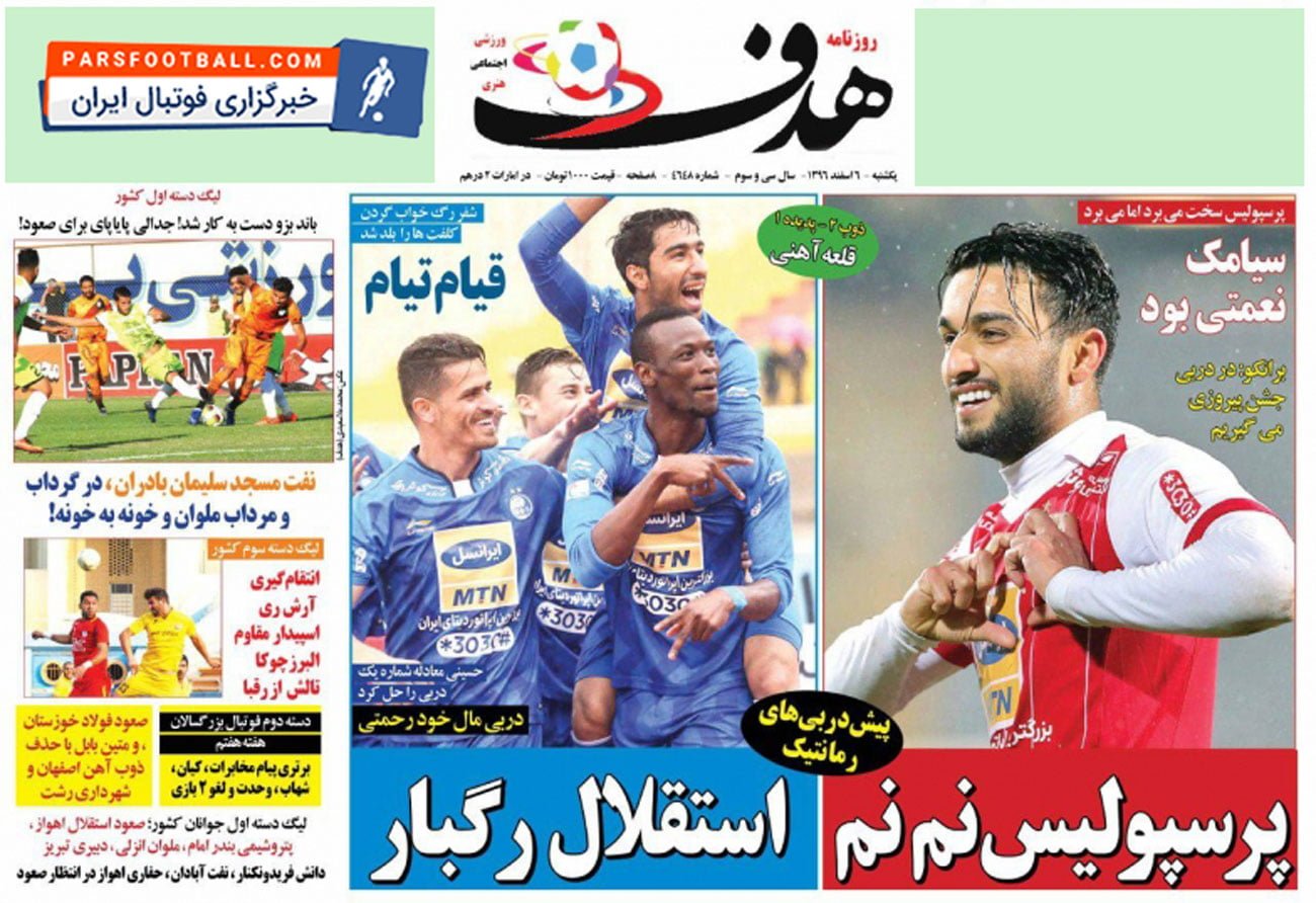 روزنامه هدف ورزشی ، یکشنبه ۶ اسفند ؛ در دربی جشن پیروزی می گیریم !
