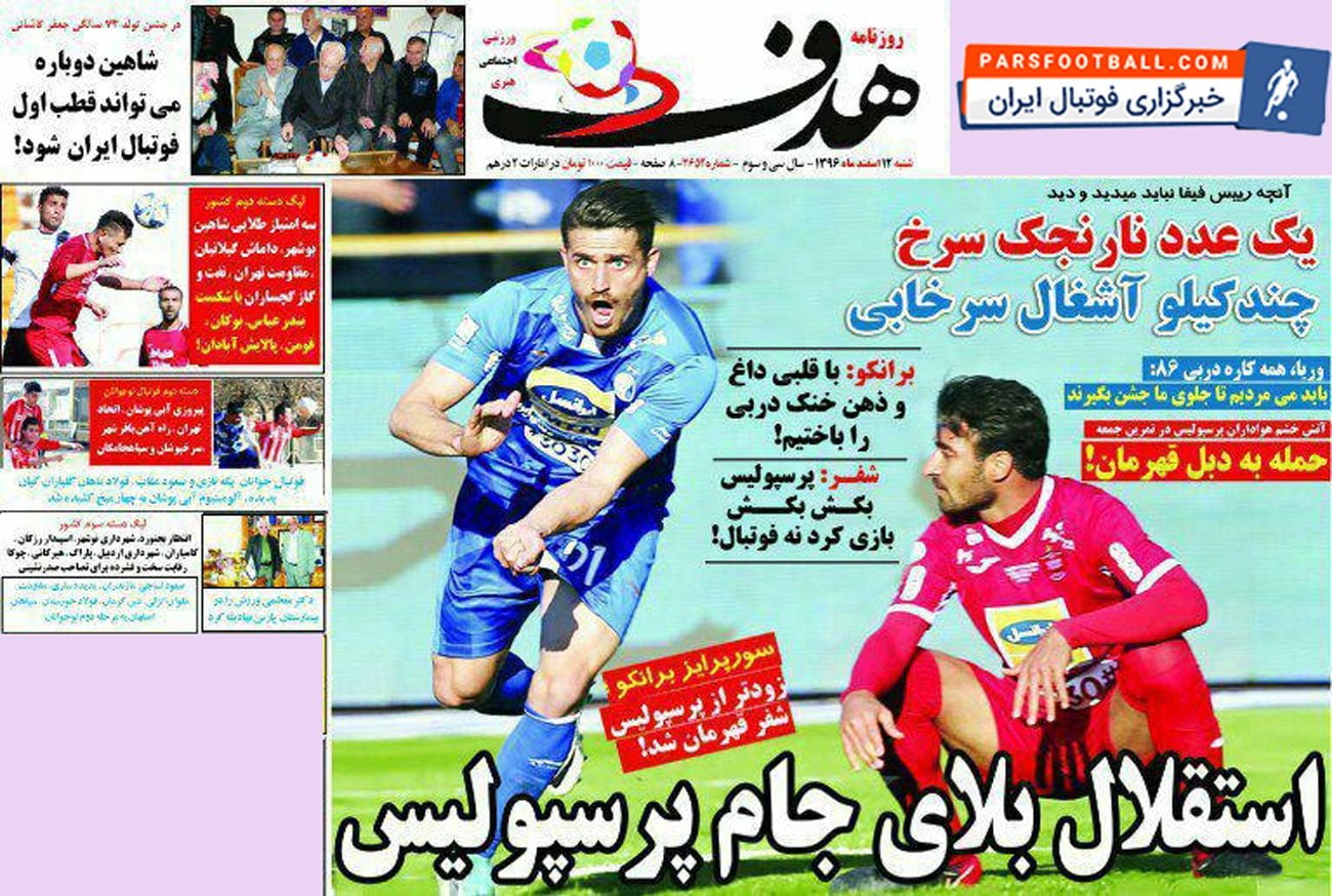 روزنامه هدف ورزشی ، شنبه ۱۲ اسفند ؛ استقلال بلای جام پرسپولیس !