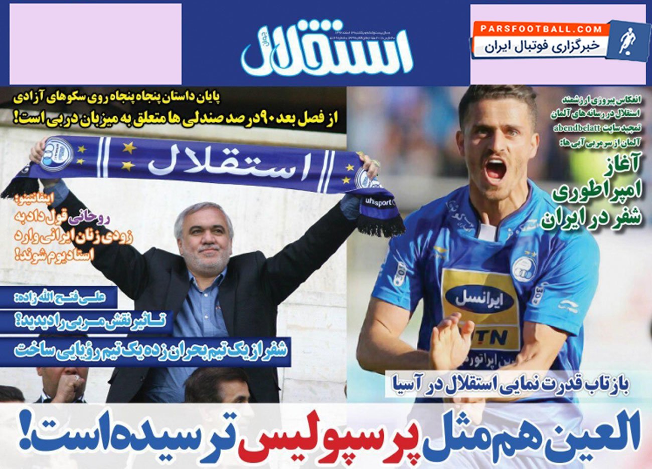 روزنامه استقلال جوان ، یکشنبه ۱۳ اسفند ؛ العین هم مثل پرسپولیس ترسیده است !