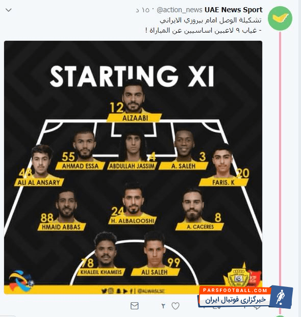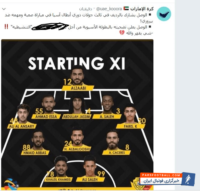 سایت های اماراتی از ترکیب الوصل برابر پرسپولیس در لیگ قهرمانان آسیا ابراز تعجب کردند.