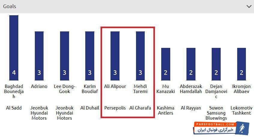 علیپور و طارمی در این فصل از لیگ قهرمانان آسیا هر کدام سه گل را برای تیم خود به ثمر رسانده اند.