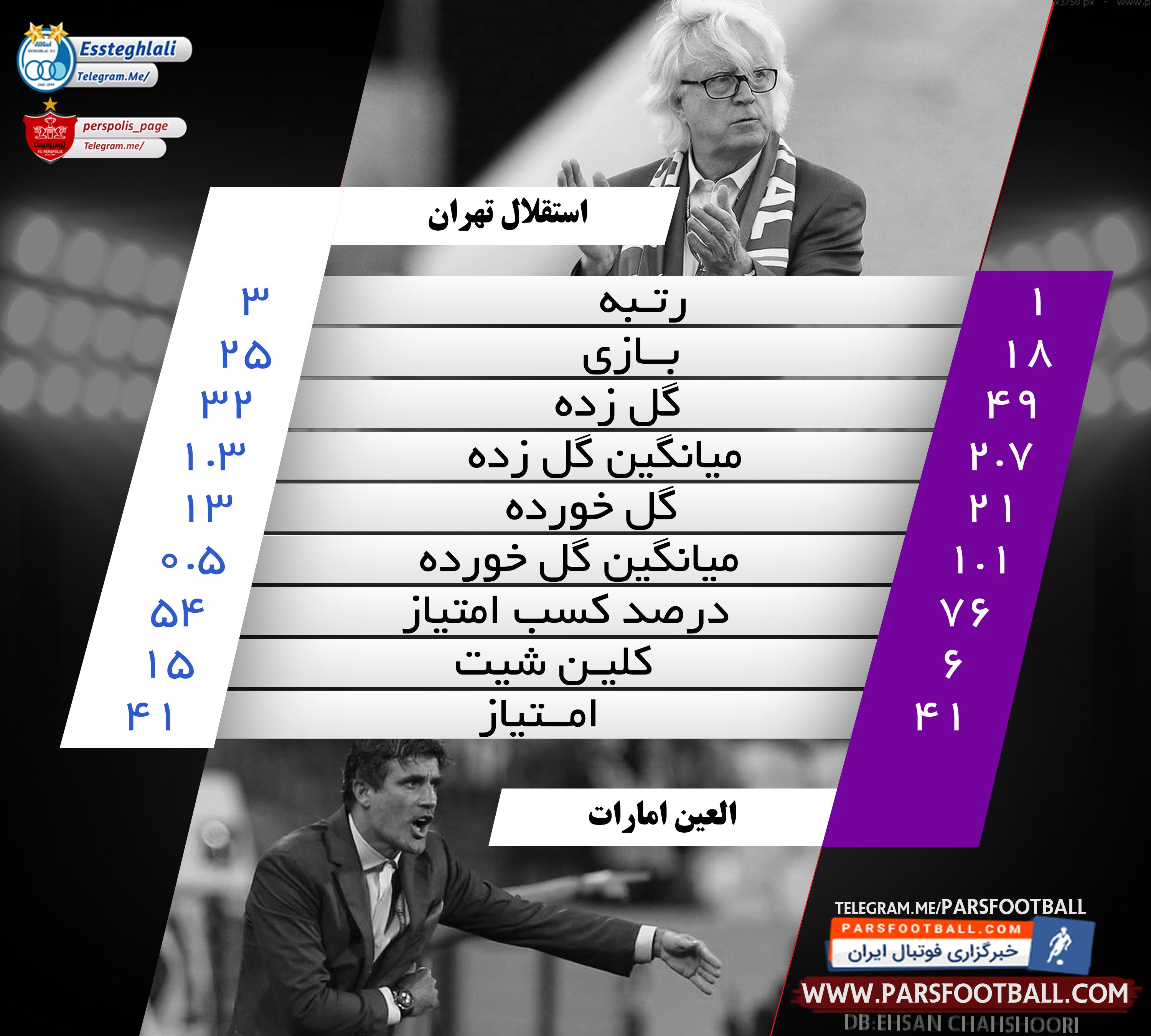 در ادامه اینفوگرافی آمار و ارقام دو تیم استقلال تهران و العین را برای شما آماده کرده ایم:
