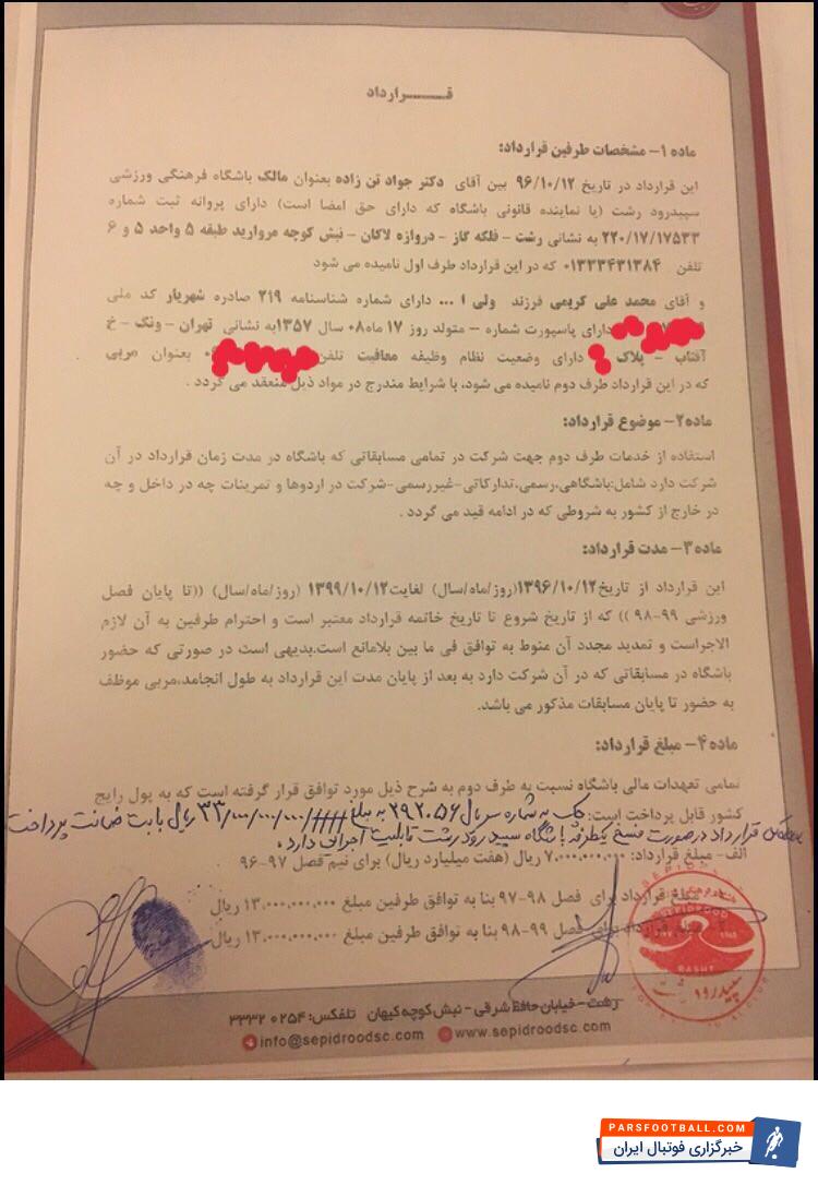 علی کریمی قرارداد خود را با تیم سپیدرود منتشر کرد