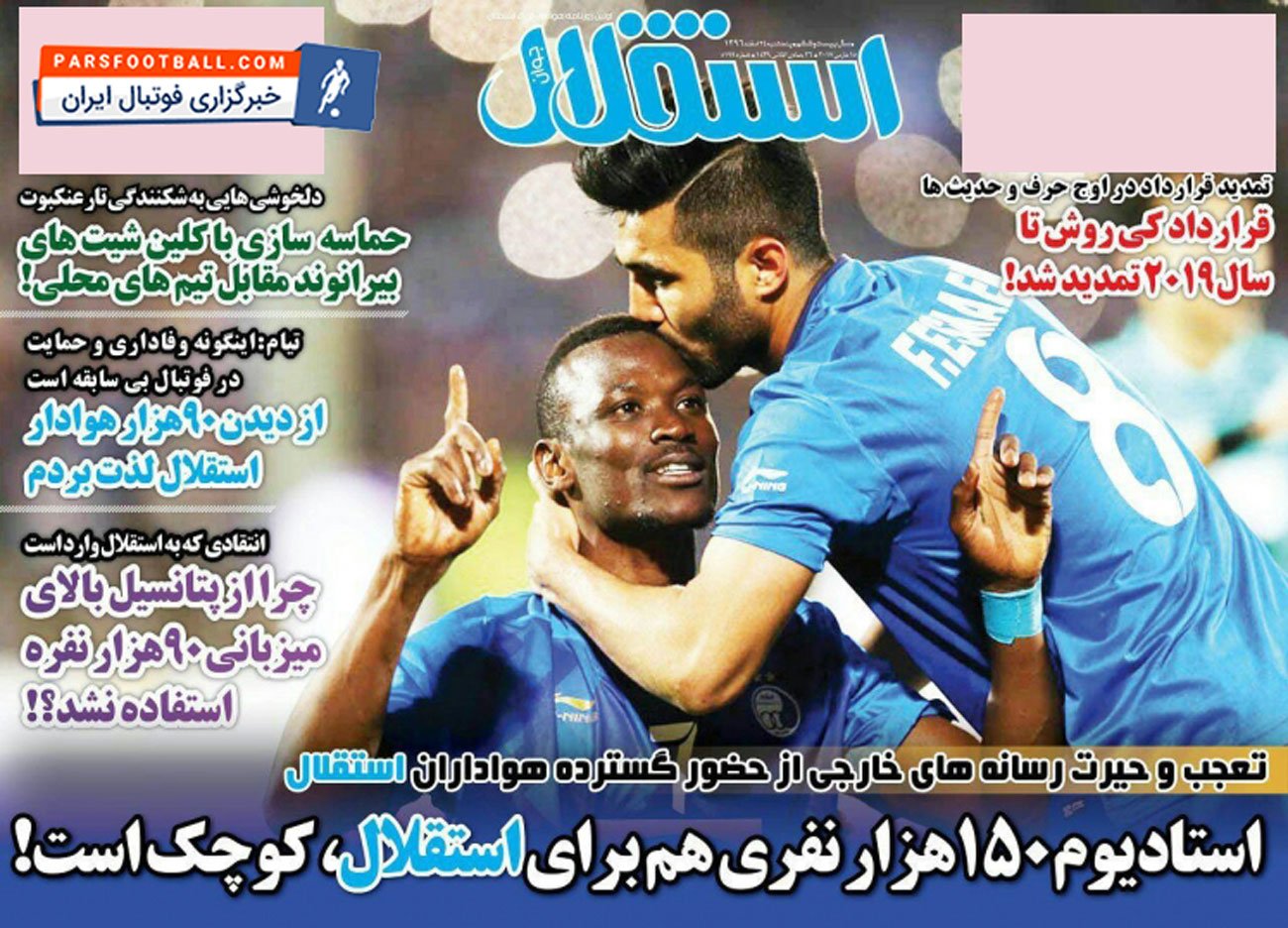 روزنامه استقلال جوان ، پنجشنبه ۲۴ اسفند ؛ استادیوم ۱۵۰ هزار نفری هم برای استقلال کوچک است !