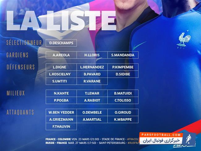 دیدیه دشان سرمربی تیم ملی فرانسه، و دعوت بازیکنان مد نظرش به تیم ملی برای مصاف با کلمبیا