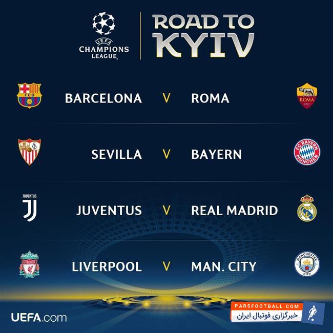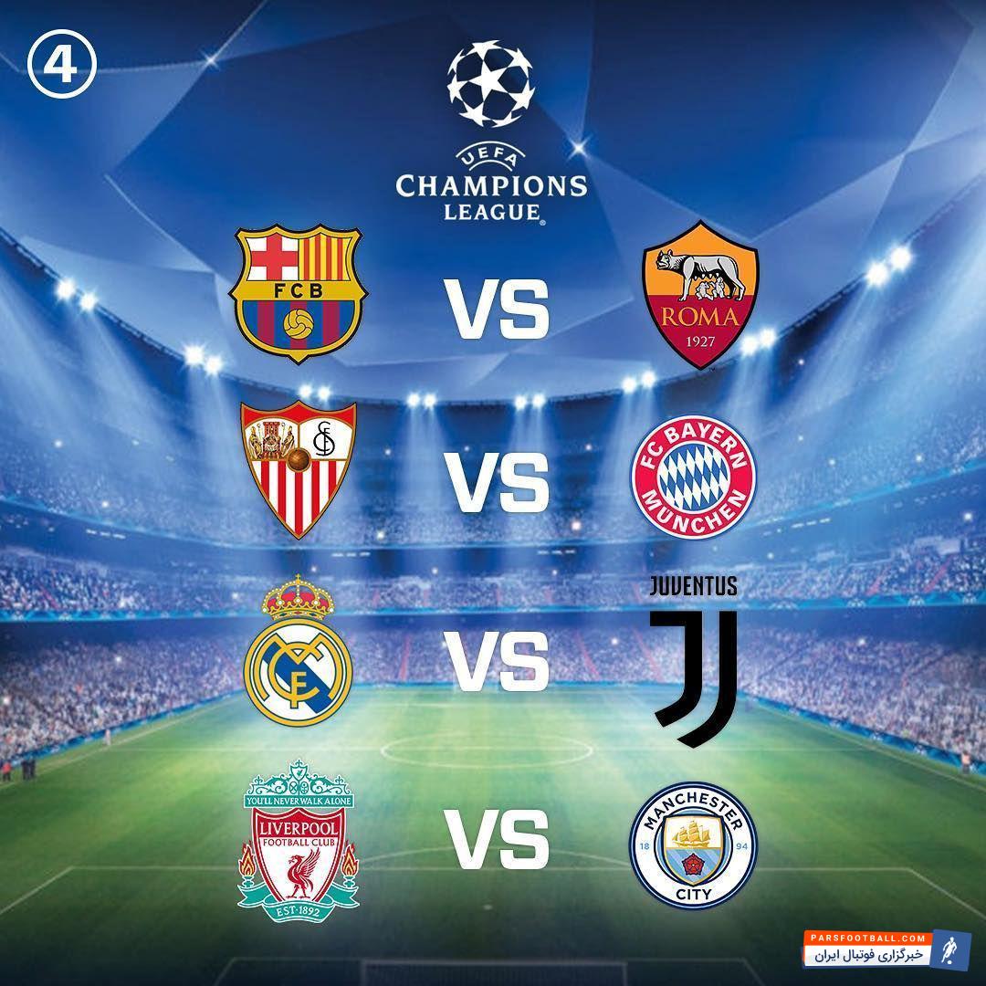 بارسلونا در مرحله یک هشتم نهایی در قرعه ای سخت چلسی را از پیش رو برداشته بود، رئال مادرید با غلبه بر پاری سن ژرمن پر ستاره در جمع ۸ تیم حاضر شده بود؛ لیورپول با شکست تحقیر آمیز پورتو، یوونتوس با برتری زیرکانه خود برابر تاتنهام، بایرن مونیخ با نتیجه ای قاطع برابر بشیکتاش، سویا با شگفتی سازی و از پیش رو برداشتن منچستر یونایتد، رم با حذف شاختار دونتسک، منچستر سیتی مهار نشدنی پپ با درهم کوبیدن بازل، در این مرحله حاضر شده بودند.