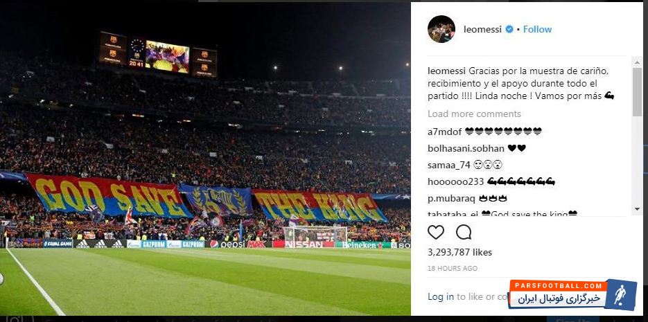مسی که در زمین بازی پاسخ بسیار خوبی به این ابراز علاقه هواداران داده بود، در اینستاگرامش نیز از این حرکت هواداران تشکر کرد و نوشت: