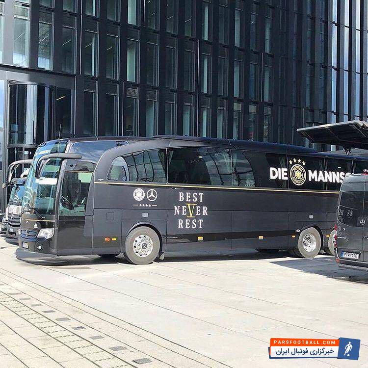 تیم ملی آلمان و نوشته ای جالب بر روی اتوبوس تیم؛ «بهترین ها هرگز استراحت نمی کنند.»