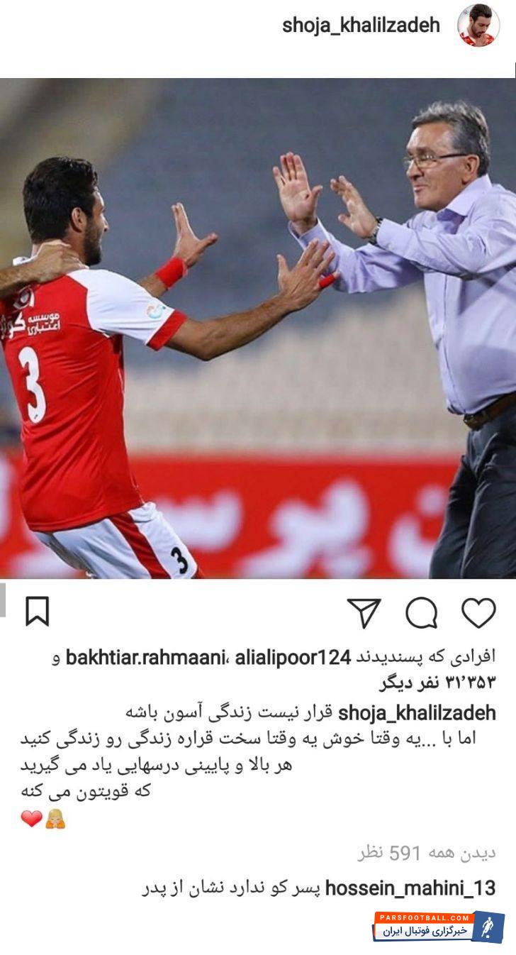 حسین ماهینی ستاره پرسپولیس به آخرین مطلب اینستاگرامی شجاع خلیل زاده، پاسخ جالبی داد.