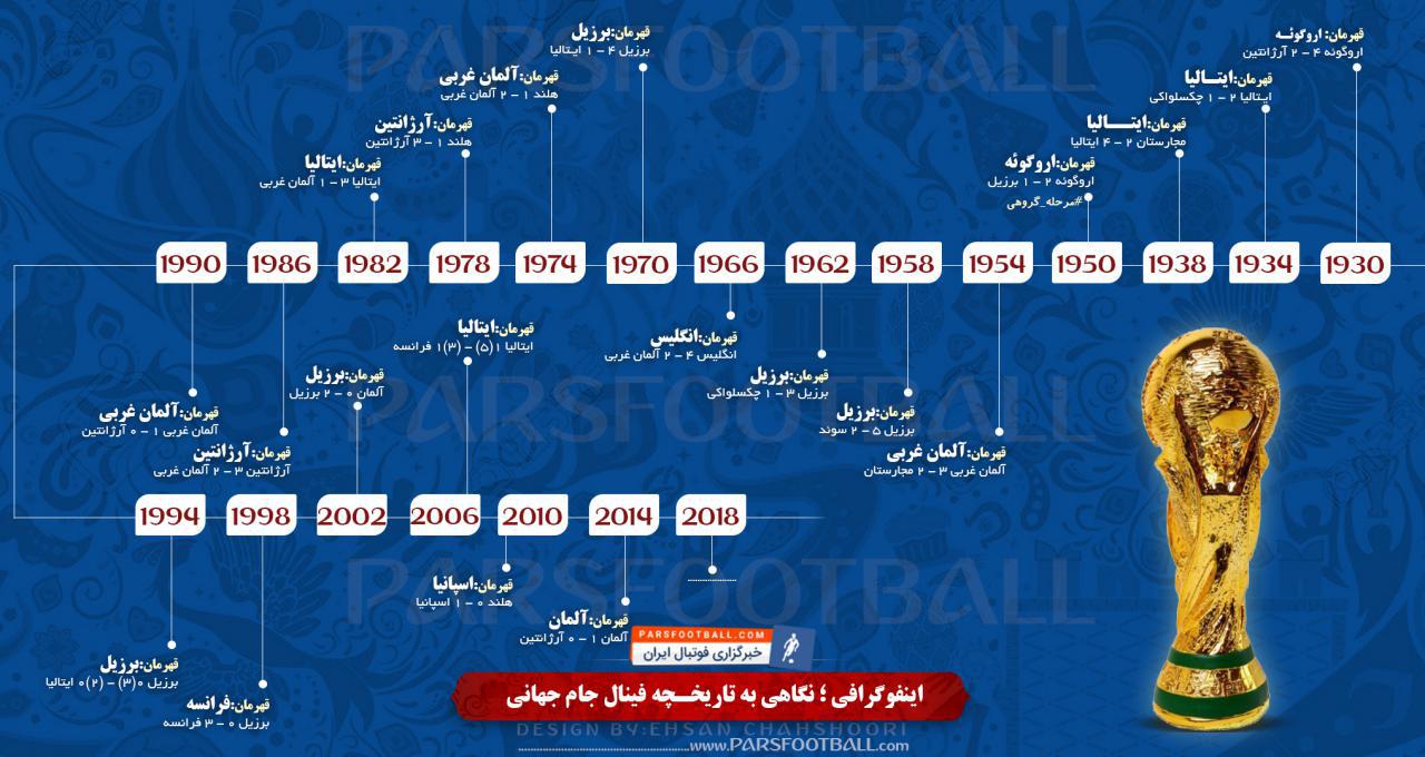 اینفوگرافی ؛ تمام فینالیست های جام جهانی ؛ آلمان، خطری بزرگ برای برزیل!