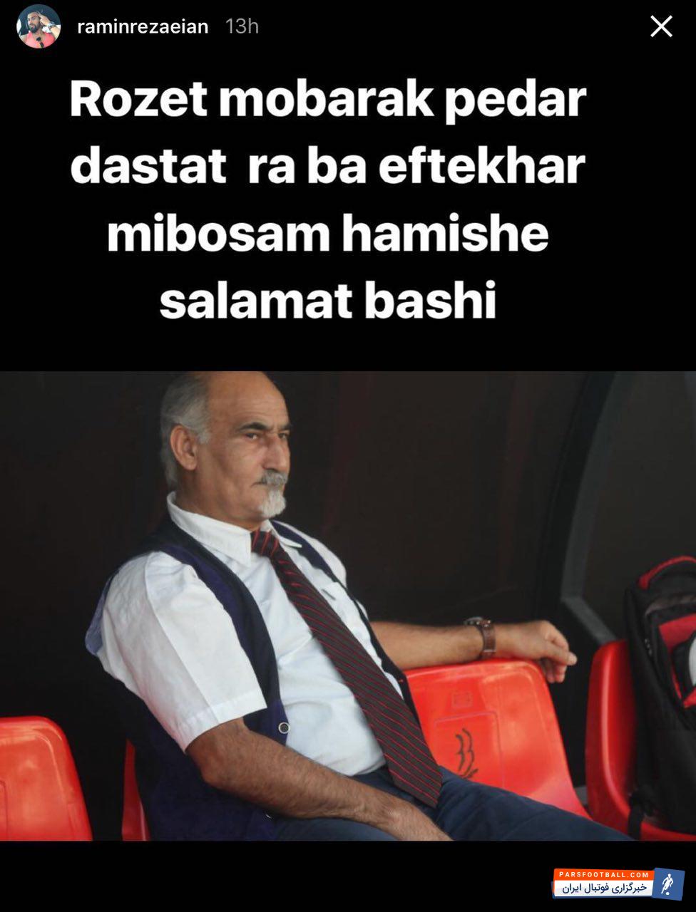 رامین رضاییان ستاره ۲۸ ساله مازندرانی که در تیم فوتبال اوستنده توپ می زند، این روز بزرگ را در صفحه اینستاگرام، به پدر خود تبریک گفت.