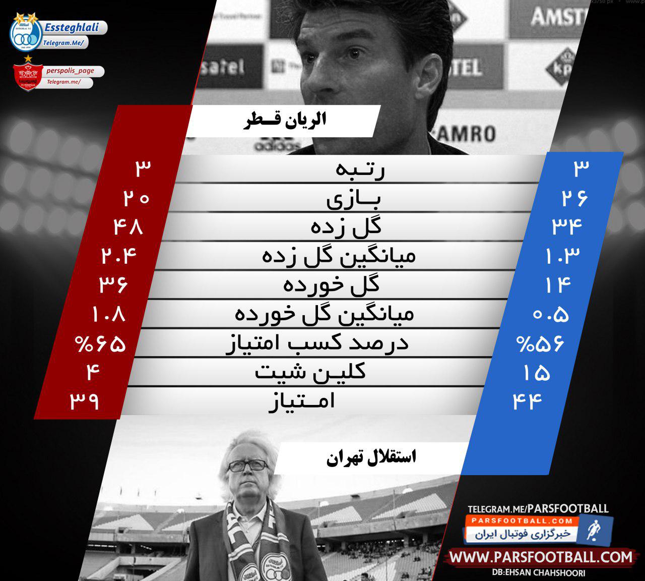 اینفوگرافی آمار و ارقام تیم های اسقلال تهران و الریان قطر در لیگ قهرمانان آسیا