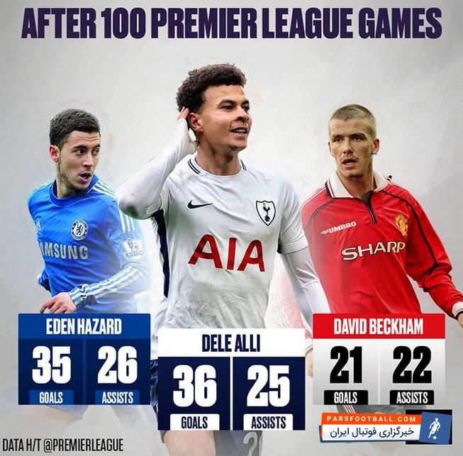 در پیروزی تاریخی تاتنهام مقابل چلسی، دله آلی برای صدمین بار، بازی در لیگ برتر را تجربه کرد. در کارنامه او در این ۱۰۰ بازی، ۳۶ گل و ۲۵ پاس گل ثبت شده که آمار قابل قبولی برای یک هافبک است. با مقایسه عملکرد دله آلی در مدت زمان مشابه (۱۰۰ بازی) نسبت به بکام و هازارد، متوجه می شویم که عملکرد او بسیار نزدیک به هازارد بوده و به مراتب از بکام بهتر است.