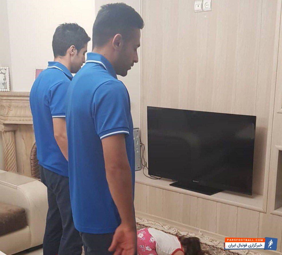 تصویری از خسرو حیدری و امید ابراهیمی دو مهره کلیدی استقلال را در حالیکه به انجام فریضه الهی و واجب نماز مشغول هستند مشاهده می کنید.