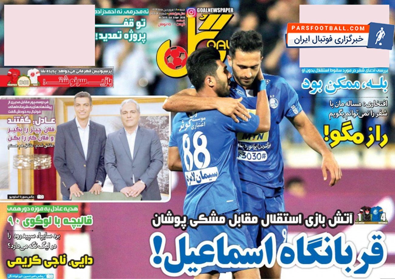 عناوین روزنامه گل روز شنبه ۱۸ فروردین به شرح زیر است :
