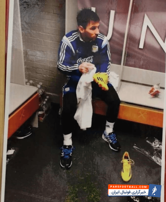 تصویری از لیونل مسی در حال تمیز کردن کتانی هایش در رختکن منچستریونایتد