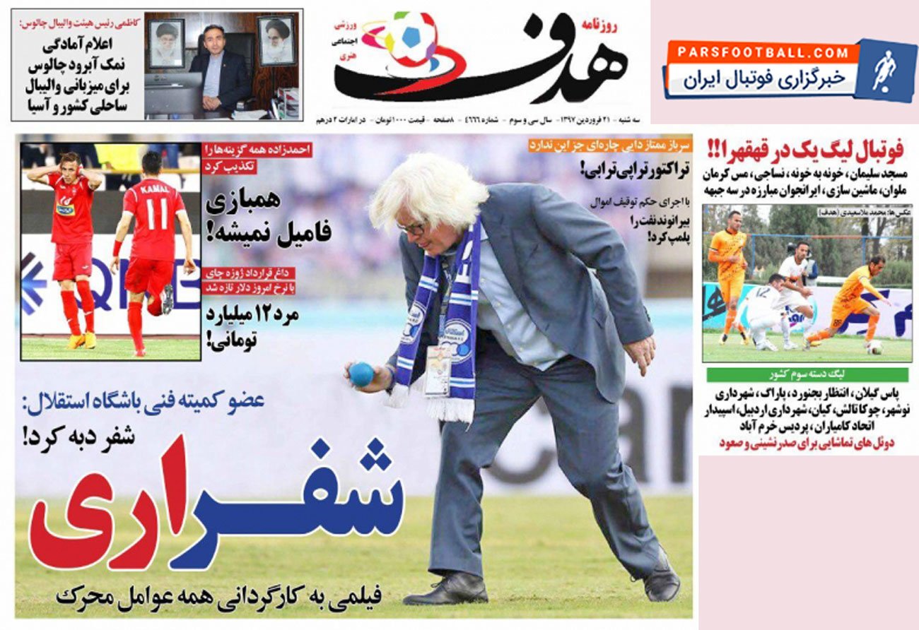 روزنامه هدف ورزشی ، سه‌شنبه ۲۱ فروردین ؛ فرشاد احمدزاده همه گزینه ها را تکذیب کرد !