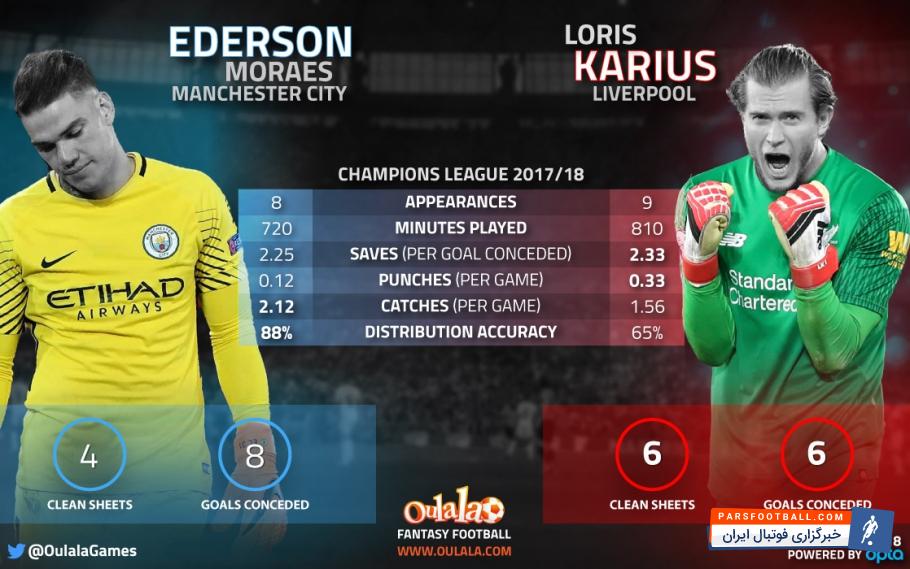 در قیاس با ادرسون، آمار گلر آلمانی بسیار خوب است، هر چند که ادرسون نیز از بهترین های این فصل چمپیونزلیگ بوده است. کاریوس ۹ بازی انجام داده و ۸۱۰ دقیقه بازی کرده است که به ازای هر گلی که دریافت کرده، ۲.۳۳ سیو داشته است. دفع توپهای او به ازای بازی ها، ۰.۳۳ بوده و ۱.۵۶ مهار توپ به ازای هر بازی داشته است. پخش توپ او نیز آمار ۶۵ درصد را به ثبت رسانده است که نشان میدهد او در این فصل چه آمادگی بالایی دارد.