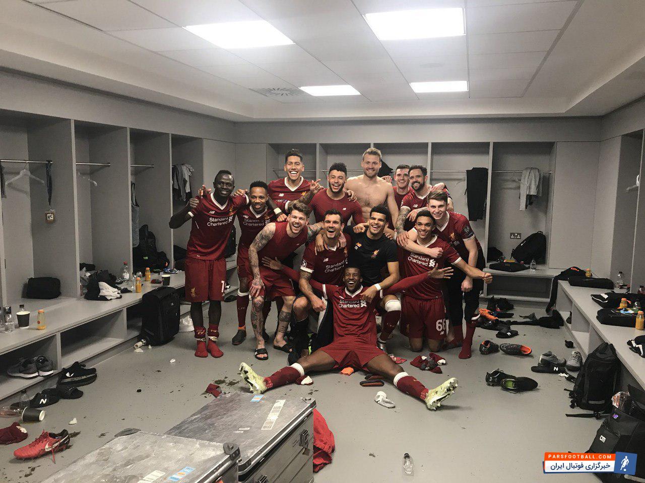 عکس ؛ شادی بازیکنان لیورپول در رختکن ورزشگاه اتحاد