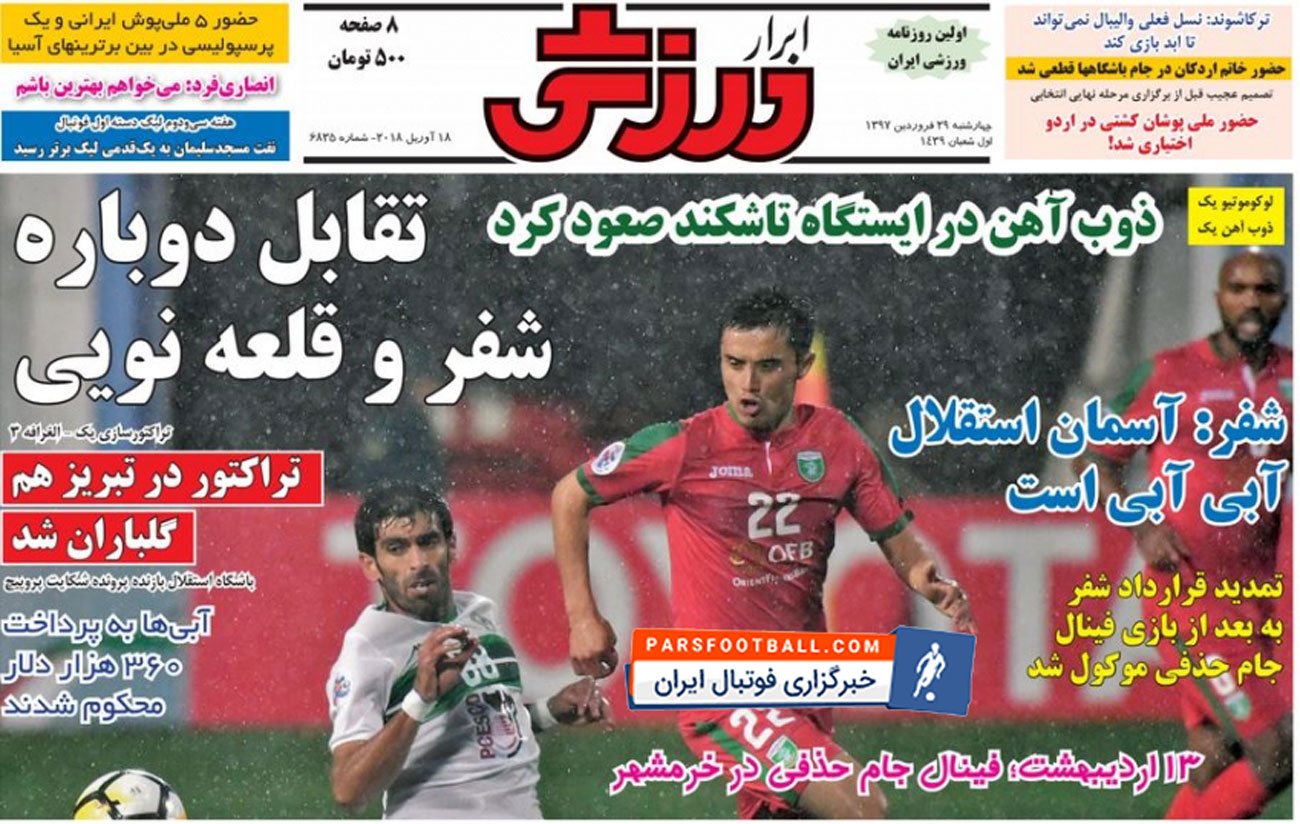 روزنامه ابرار ورزشی ، چهارشنبه ۲۹ فروردین ؛ آسمان استقلال آبی آبی است !