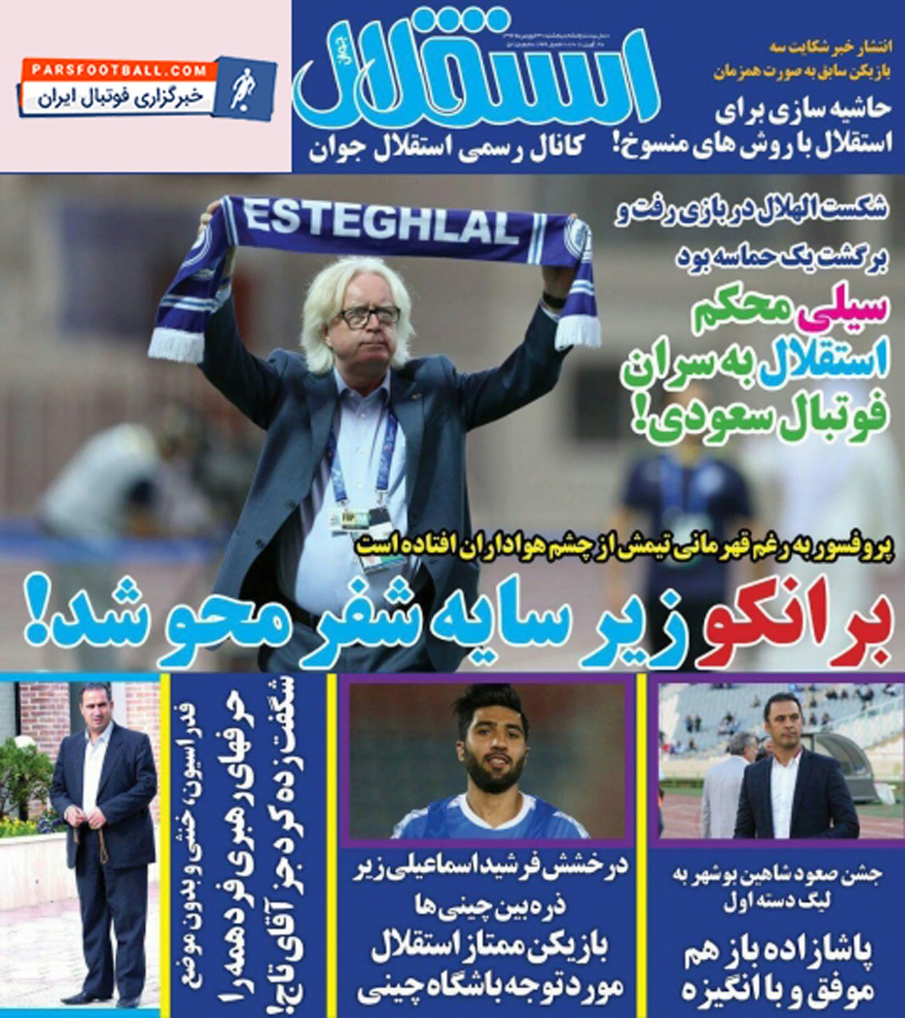 روزنامه استقلال جوان ، پنجشنبه ۳۰ فروردین ؛ برانکو زیر سایه شفر محو شد !