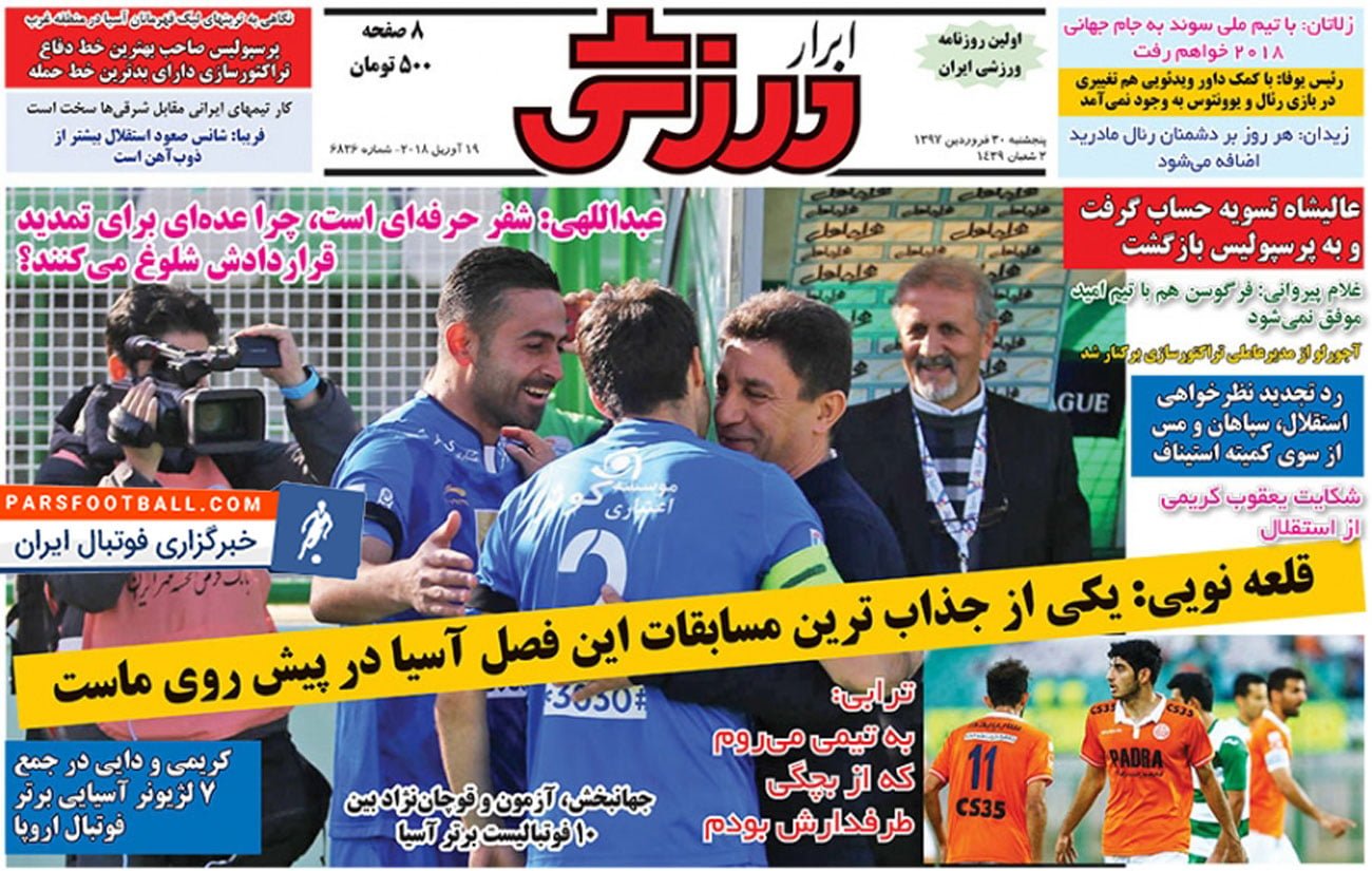عناوین روزنامه ابرار ورزشی روز پنجشنبه ۳۰ فروردین به شرح زیر است :