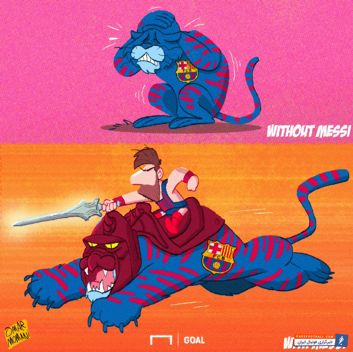 بر این اساس عملکرد بارسلونا با مسی و بدون لیونل مسی سوژه کاریکاتور شده است.