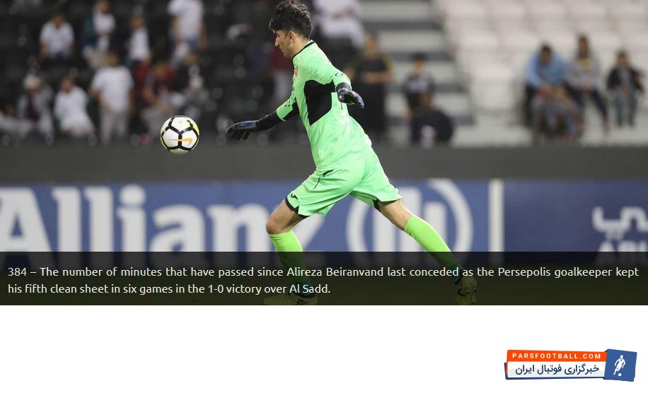 دروازه بان ملی پوش پرسپولیس رکوردی ویژه در لیگ قهرمانان به جا گذاشته که در سایت AFC هم از آن یاد شده است.