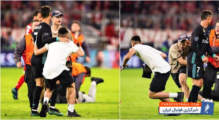 جیمیجامپهایی که پس از سوت پایان بازی بایرن-رئال به سمت زمین هجوم بردند تا با رونالدو سلفی بگیرند!