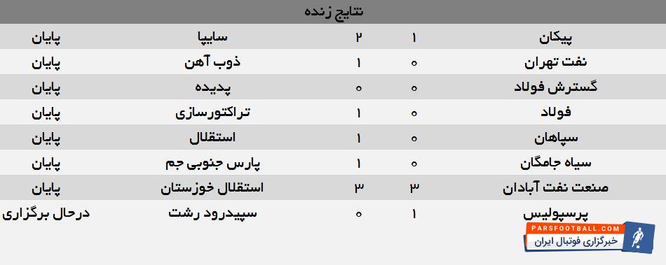 نتایج زنده هفته سی ام لیگ برتر به همراه جدول آنلاین