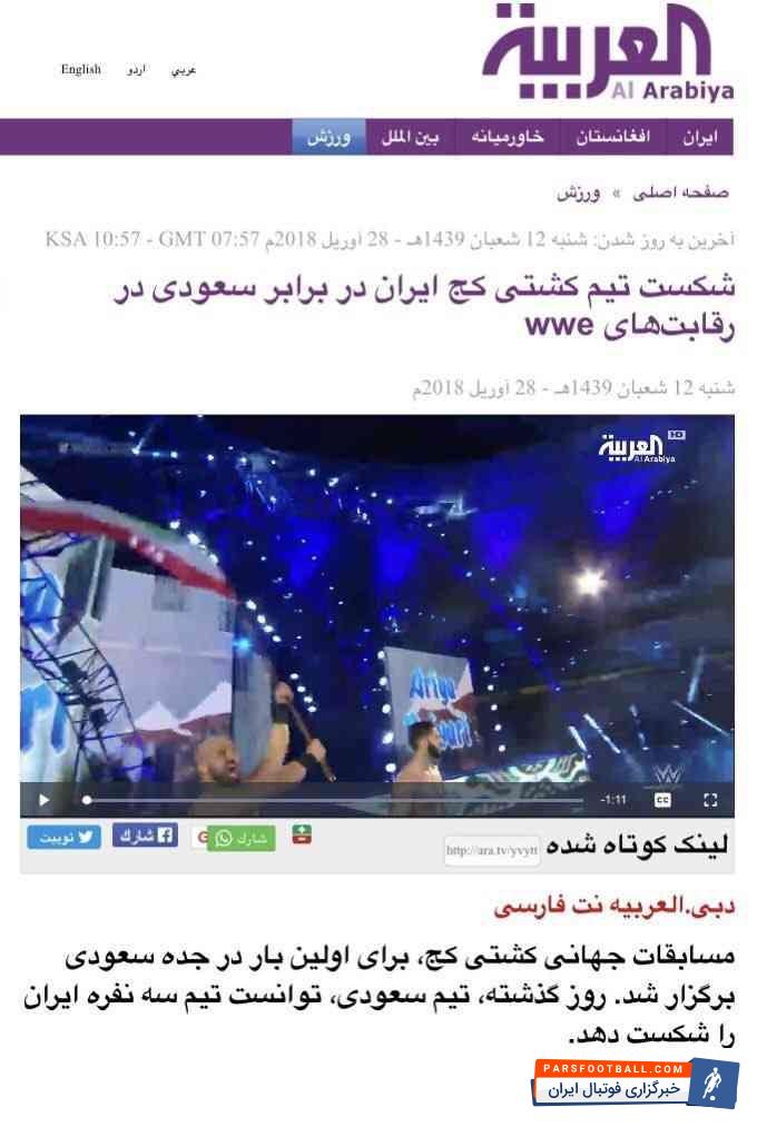 در یکی از همین تفکرات پوچ وب سایت رسانه عبری عربی العربیه این اقدام غیر ورزشی دو ایرانی را با عنوان ” شکست تیم کشتی کج ایران در برابر سعودی در رقابت های wwe “منتشر کرده است.
